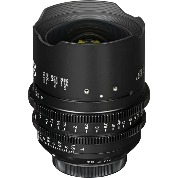 Sigma's FF High-Speed Prime Lenses combine the same high-quality optics and mechanics of their Global Vision still line in a cine-oriented design. This 20mm Canon EF mount prime is a wide focal length in the series, offering full frame sensor coverage, 6 to 8K resolution, and a T1.5 aperture in a compact, lightweight form; it is also available in Sony E and PL mounts. What sets these lenses apart from the standard Sigma High-Speed Primes is fully luminescent markings. When shooting in dim or dark environments, focus pullers and camera operators will be able to easily discern lens markings without the use of a possibly distracting lens light. A common 95mm front diameter and similar physical attributes across the lens line make it easier and quicker to mount lens accessories such as matte boxes, follow focuses, and lens control motors.