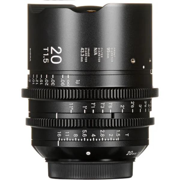 Sigma's FF High-Speed Prime Lenses combine the same high-quality optics and mechanics of their Global Vision still line in a cine-oriented design. This 20mm Sony E mount prime is a wide focal length in the series, offering full frame sensor coverage, 6 to 8K resolution, and a T1.5 aperture in a compact, lightweight form; it is also available in Canon EF and PL mounts. What sets these lenses apart from the standard Sigma High-Speed Primes is fully luminescent markings. When shooting in dim or dark environments, focus pullers and camera operators will be able to easily discern lens markings without the use of a possibly distracting lens light. A common 95mm front diameter and similar physical attributes across the lens line make it easier and quicker to mount lens accessories such as matte boxes, follow focuses, and lens control motors.