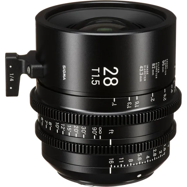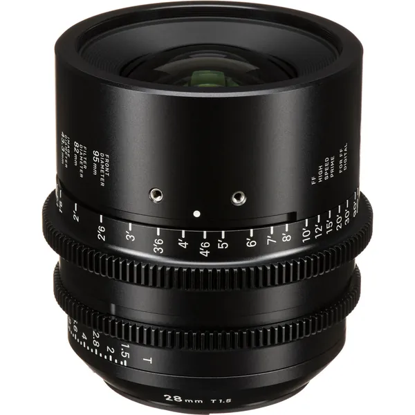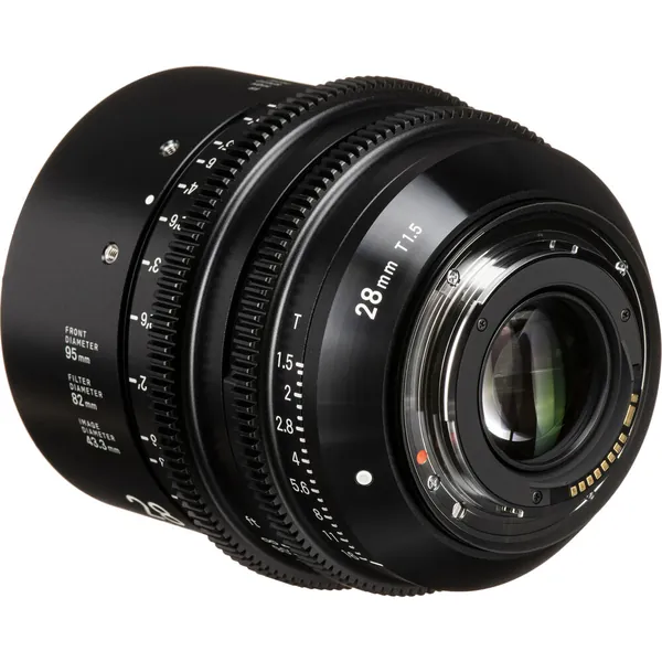 Sigma's FF High Speed Prime Lenses combine the same high-quality optics and mechanics of their Global Vision still line in a cine-oriented design. This 28mm Canon EF-mount prime is a wider focal length in the series, offering full-frame sensor coverage, 6-8K resolution, and a T1.5 aperture in a compact, relatively lightweight form; it is also available in Sony E and PL mounts. A common 95mm front diameter and similar physical attributes across the lens line make it easier and quicker to mount lens accessories such as matte boxes, follow focuses, and lens control motors.