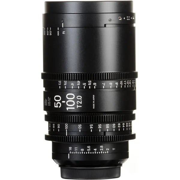 The Sigma 50-100mm T2 Cine High-Speed Zoom Lens (Feet) with a Sony E-mount provides an image circle that covers Super 35mm-sized sensors. It features a maximum T-stop of 2, and the aperture does not ramp over the zoom range. It shares common lens gear positions with the other lens in the Sigma High Speed Zoom lineup, which makes for rapid lens changes.