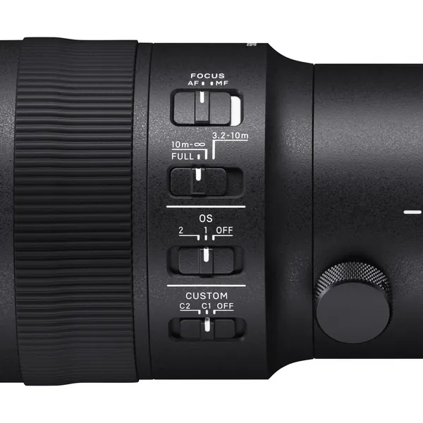 Custom buttons and switches: three AFL buttons, focus mode switch, focus limiter switch, OS switch, custom mode switch, aperture ring click switch