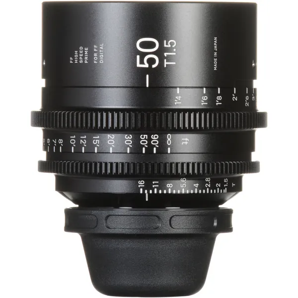Sigma's FF High Speed Prime Lenses combine the same high-quality optics and mechanics of their Global Vision still line in a cine-oriented design. This 50mm Sony E-mount prime is a mid-range focal length in the series, offering full-frame sensor coverage, 6-8K resolution, and a T1.5 aperture in a compact, lightweight form; it is also available in Canon EF and PL mounts. Electronic contacts in the mount provide lens data communication between the lens and the camera. A common 95mm front diameter and similar physical attributes across the lens line make it easier and quicker to mount lens accessories such as matte boxes, follow focuses, and lens control motors.