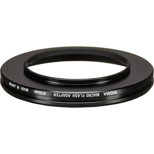 This Sigma 55mm adapter ring allows the EM-140 DG Ringlight Flash to be mounted on a lens with 55mm filter threads.
