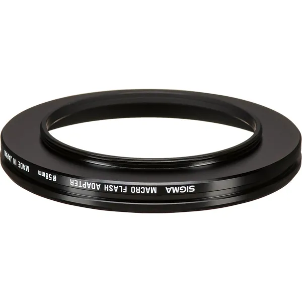 This Sigma 58mm adapter ring allows the EM-140 DG Ringlight Flash to be mounted on a lens with 58mm filter threads.