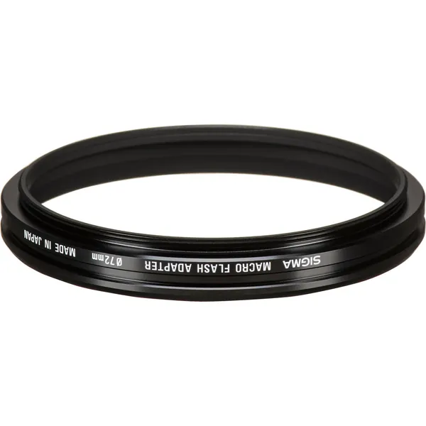 This Sigma 72mm adapter ring allows the EM-140 DG Ringlight Flash to be mounted on a lens with 72mm filter threads.