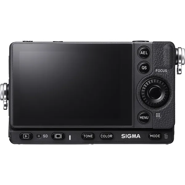 The Sigma fp Mirrorless Camera delivers high-spec functionality for stills and video in an extremely compact body that weighs under one pound. Driven by a full-frame 24.6MP BSI Bayer CMOS sensor, 14-bit color depth, electronic image stabilization, and Leica's L-mount lens interface, the fp and its fully electronic shutter provide a maximum resolution for raw and JPEG files of 6000 x 4000 and a shooting rate of 18 fps, while its focus system employs contrast detection and a 49-point selection mode for AF measurement distance, as well as face detection, eye detection, and focus peaking. A base sensitivity of ISO 100-25600 can be expanded to ISO 6-102400, and its video recording capabilities allow for UHD 4K recording at up to 30p, while Full HD recording can be captured at up to 120p. For raw video data, 12-bit CinemaDNG internal recording is supported. To help shooters fine tune their video content, Sigma's "Teal and Orange" mode is inspired by the color grading techniques of Hollywood and creates high contrast between orange colors, which are found in human skin tones, and teals (cyan blue), which are their complement. So that users may easily switch between still and video modes, there is a switch on top of the camera.