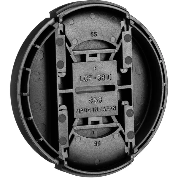 The LCF-58 III from Sigma is a spare or replacement lens cap designed to fit lenses and cameras with a 58mm thread diameter. The lens cap utilizes a center-pinch and side-pinch design. It features a matte black finish with the Sigma logo on the front.
