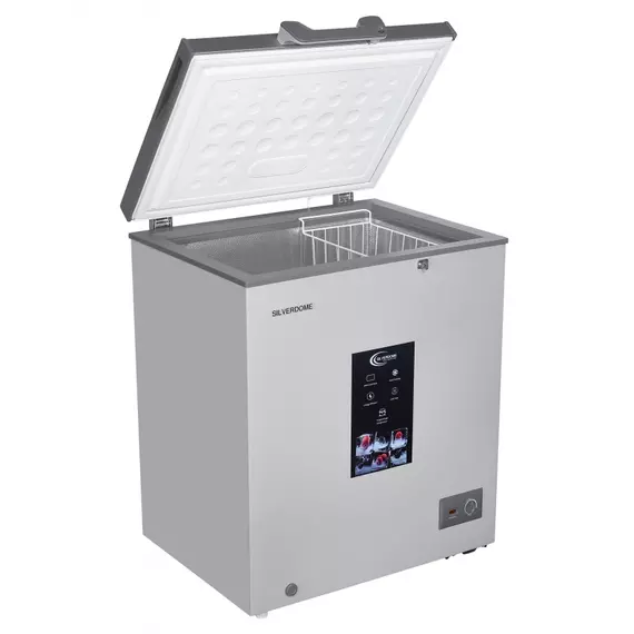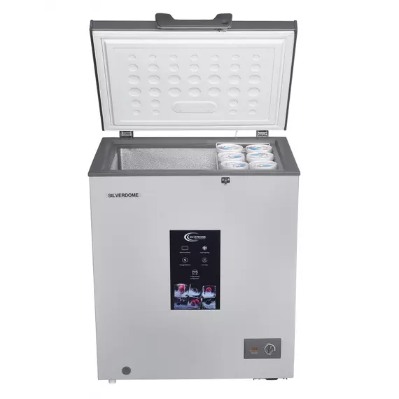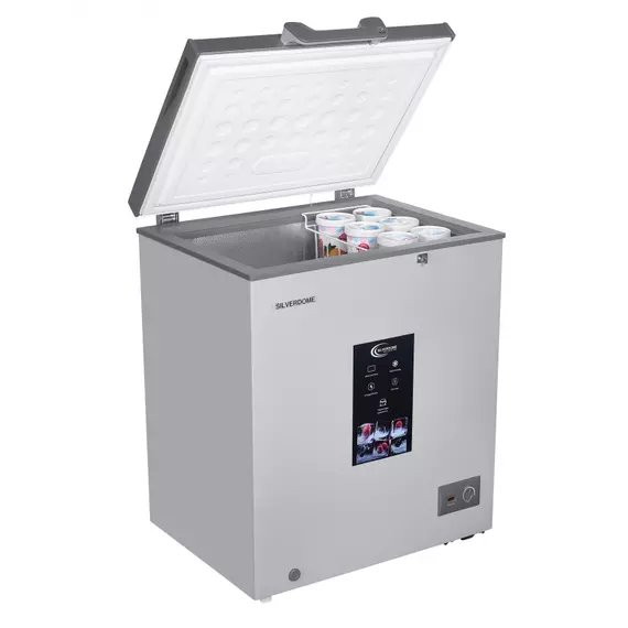 Features Fast Freezing Convertible Freezer With Cool Pack Tropicalized Compressor Energy Efficient CFC Free General Specifications: Net Volume Total (L): 145 Net Volume Freezer (L): 145 Refrigerant (R600a/R134a): R600a/42g Defrost System: Manual Foaming Agent: C-Pentane Condenser Type: Hidden Energy Class: A+ Climate Class: T Energy Consumption (kWh/24h): 0.515 Energy Consumption (kWh/year): 188 Freezer Rating: 4 star Freezing Capacity: 6.0 kg/24h Noise Level dB(A): 42 RoHS/Reach compatible: Yes Current(A): 1.1A Power Input (watt): 115W Number of Doors: 1 Control System: Mechanical Door lock: Yes Handle Type & Material: External Handle Door Type: Flat Door Panel Material & Color: Silver Cabinet Color: Grey Evaporator Type: Hidden Basket: 1 Temperature Rise Time with Power Breakdown: 26H Dimension Product (mm): W705XD550XH845 Dimension Package (mm): W730XD570XH886 40’H Loading: 82/167/193 Weight (kg) Net / Gross: 27/30