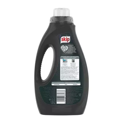 Skip Perfect Darks automatic washing liquid keeps denim and dark clothing items from fading. Skip Automatic Washing Liquid with scientifically formulated fibre care technology keeps clothes and linens clean and looking like new, wash after wash. Laundry with Skip auto wash is not a chore, but a pleasure. Skip works to protect the fibres in clothes that degenerate over time during wearing and machine washing. Skip's advanced enzyme technology cleans, removes stains and cares for fabrics. Normal regular washing weakens the fibres of fabrics, breaking them down over time so that clothes tear more easily or develop little holes. Skip fights the five signs of ageing in clothing: it maintains colour; protects white fabrics; removes bobbles; prevents roughness, and gets rid of stains.