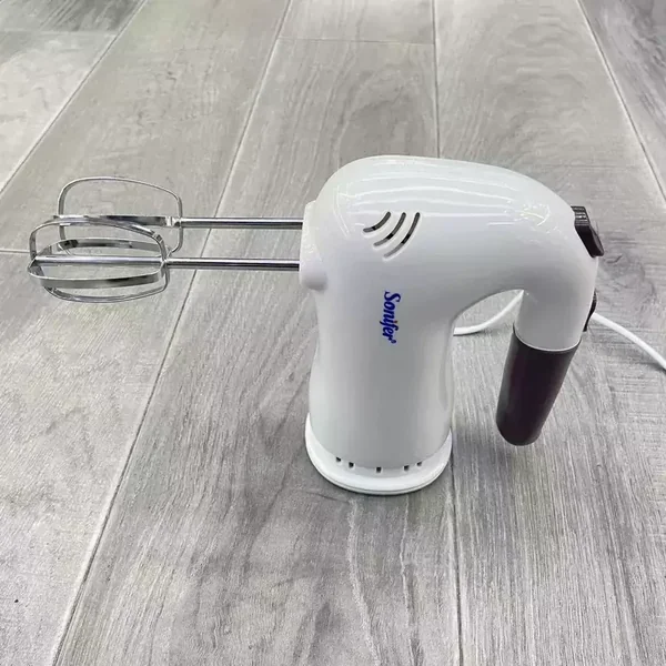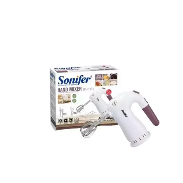 The Sonifer SF-7001 is a 200W electric hand mixer designed for household use. With 5 speed settings and a convenient beater ejector, it provides reliable performance for a variety of mixing tasks, all backed by a 1-year warranty.