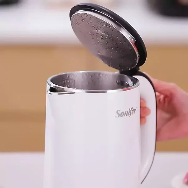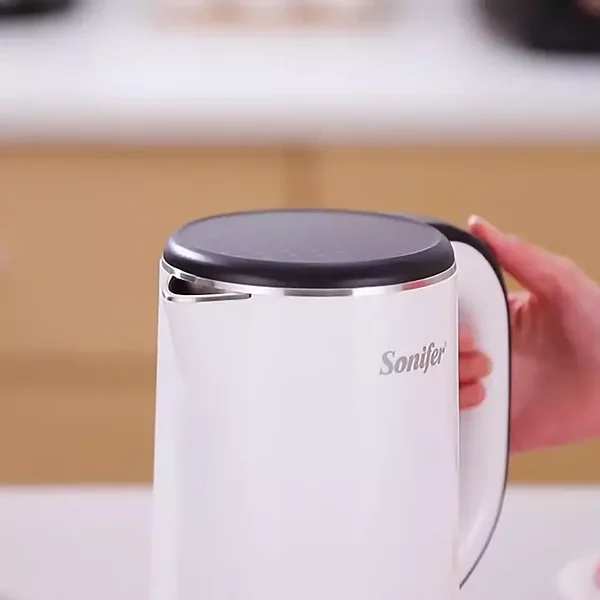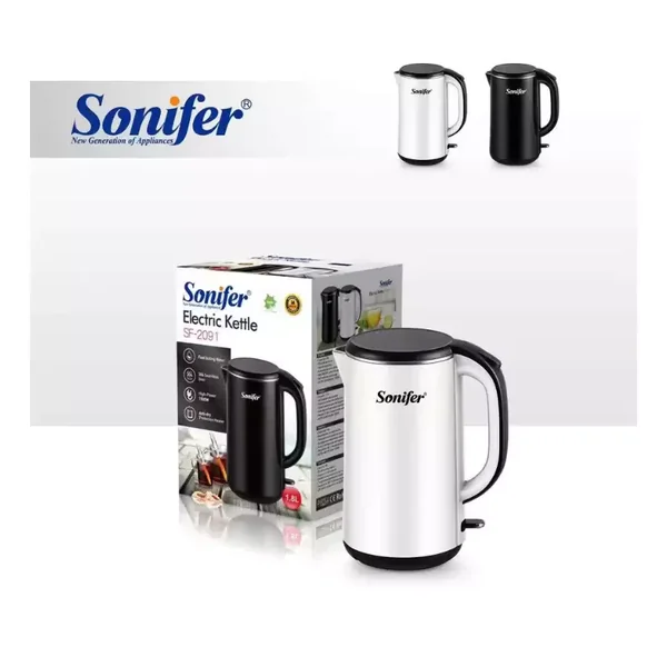 The Sonifer SF-2091 is a cordless electric kettle featuring fast 1500W heating in a sleek stainless steel design. It offers convenient one-touch operation with automatic safety shut-off for a reliable boiling experience.