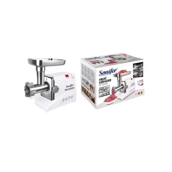 The Sonifer Pure Copper Motor Multifunctional Meat Grinder (Model SF-5006) is a high-performance kitchen appliance designed for heavy-duty food preparation. With its powerful 2000W pure copper motor, it efficiently grinds meat, processes vegetables, and handles a variety of other culinary tasks with ease and durability.
