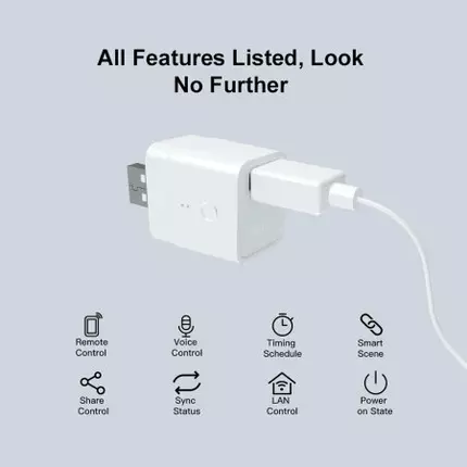 SONOFF 5V Micro USB Smart WiFi Adaptor Smart Switch for Type A USB Devices, Compatible with Alexa & Google Home Assistant, APP Remote Control Switch, Voice Control, Timer Function, No Hub Required Easy to use, small and portable The Sonoff Wireless adapter is recommended for all your USB power adapters and cables. Simply plug in and play with this easy-to-use, convenient and portable smart adapter. Remote control via app The Sonoff Wireless adapter is a smart plug that transforms your ordinary USB devices into smart devices. Control connected devices through the eWeLink app, via an iOS or Android smartphone with no limits on the distance between you and the smart adapter. Sync status and share control Check the status and share control of your connected USB devices through the eWeLink app Voice control via Google and Alexa The Sonoff Wireless adapter can also be controlled by your voice via Google and Alexa, providing you with a convenient hands-free experience. Smart timing control Through the eWeLink app, pre-set timers and create schedules for your connected devices so that they can be automatically turned on or off at times of your choosing, with no need to control the connected devices manually every time. Automatically stop charging your connected devices once they are fully charged by setting a timer for them, keeping your devices safe and preventing pre-mature battery aging. High-heat resistant, flame retardant and ultra-durable Featuring a PC V0 shell, the Sonoff Wireless adapter is high-heat resistant, flame retardant and ultra-durable. Be at ease knowing you and your devices are safe during usage.