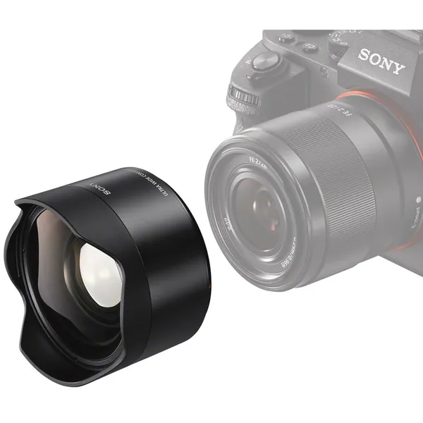 The 21mm Ultra-Wide Conversion Lens for FE 28mm f/2 Lens from Sony broadens the angle-of-view of the 28mm f/2 lens to 92º for an ultra wide focal length equivalence of 21mm when used with full-frame cameras. As this converter lens is uniquely compatible with the FE 28mm f/2 lens, it transmits EXIF data through the host lens to the camera. The optical design of the converter lens is comprised of 4 elements in 4 groups and when on the 28mm lens, it provides a maximum aperture of f/2.8 and a minimum manual focus distance of 7.9". When the lens is used with an APS-C E-Mount camera, the converter lens provides a 68° angle of view and a 31.5mm focal length equivalent. It is a compact addition to the 28mm lens with a bayonet mount and features a built-in petal-type lens hood.