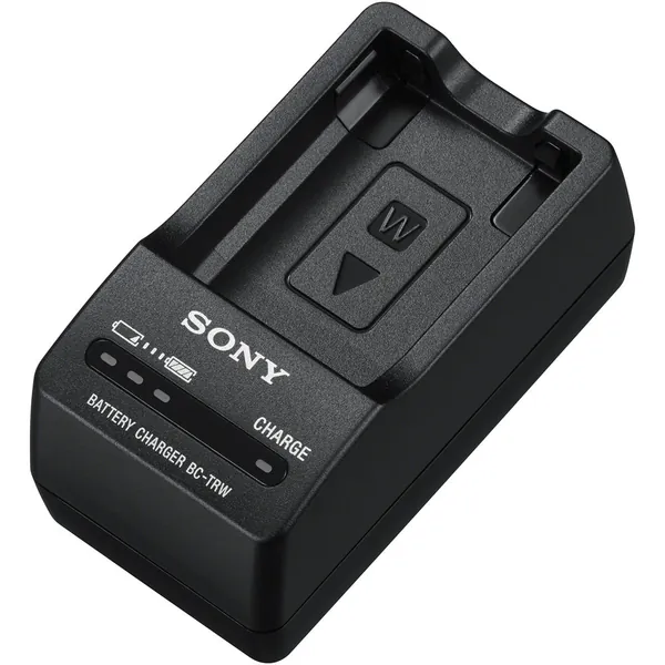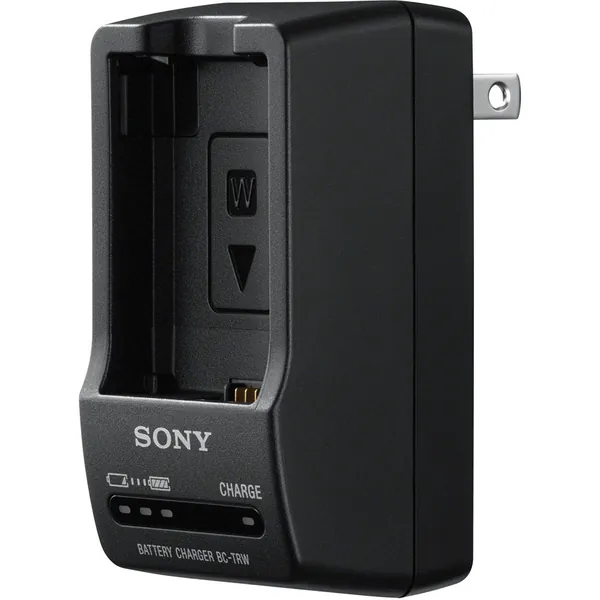 The black BC-TRW W Series Battery Charger from Sony is compatible with the InfoLITHIUM NP-FW50 battery that powers select digital cameras. It features a retractable plug for easy storage and travel. The charger runs on 100-240VAC power to enable use all over the world. The BC-TRW also has an indicator light that displays charging status.
