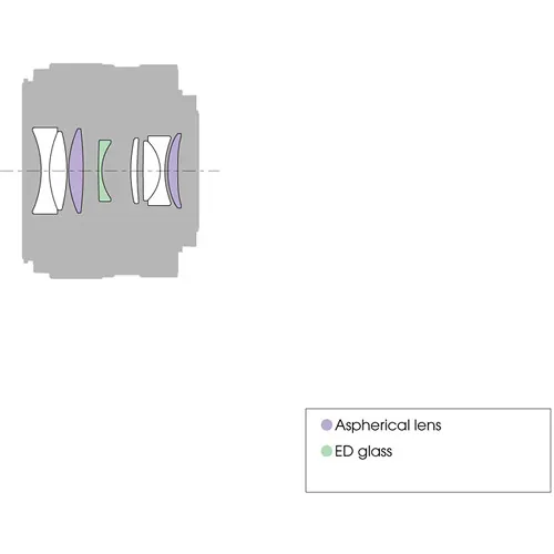 One extra-low dispersion glass element is featured in the lens design to help reduce chromatic aberrations and color fringing for improved clarity and color neutrality.