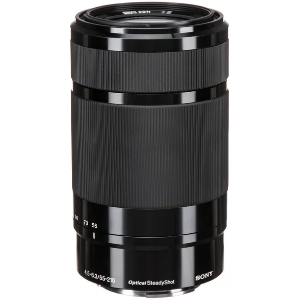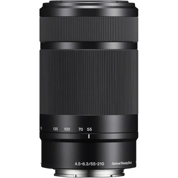 An ideal complement to many kit zooms, the black E 55-210mm f/4.5-6.3 OSS Lens from Sony opens the door to many telephoto perspectives with its 82.5-315mm equivalent focal length range on APS-C-format E-mount cameras. This portrait-length to mid-tele reach is ideal for a range of subjects, from portraits to distant sports and landscapes, and its sleek size also makes it a great travel companion.