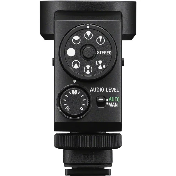 Using an onboard dial control, choose between eight different recording modes, including stereo, to suit different recording scenarios. Because the embedded condensers are laid out in a diamond orientation, the ECM-M1 can isolate the left, right, rear, or front audio sources and record separate channels simultaneously. Selectable modes include superdirectional, unidirectional, omnidirectional, superdirectional (rear), superdirectional (front and rear), super directional (front and rear separate), stereo, and ultra-directional.