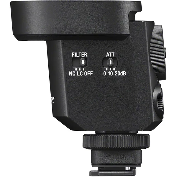 Controls for pickup pattern, gain, and audio level are easy to reach on the rear and side panels and visible at a glance for quick adjustments during shooting. The ECM-M1's noise-cut filter and low-cut filter are very effective at reducing extraneous ambient noises and cutting out low-frequency noise through the use of digital signal processing algorithms, maximizing audio quality at the recording stage and reducing the need for complex post-processing.