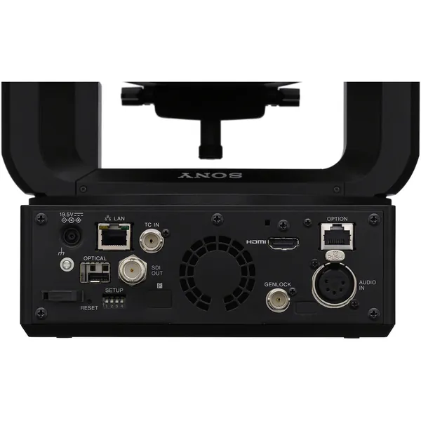A robust interface includes a LAN port for network and PoE++ use, timecode input, a genlock connector, and red/green tally indicators