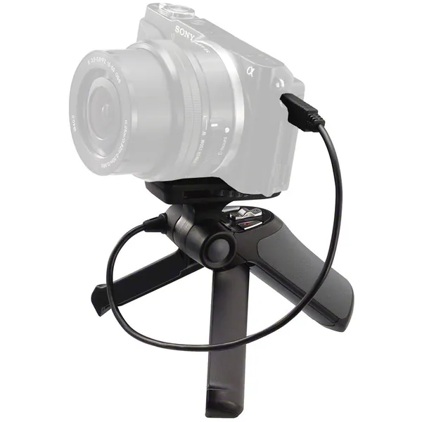 The Sony GP-VPT1 Shooting Grip with Mini Tripod provides one-handed operation of your multi-terminal equipped Sony camcorder or camera. It can also fold out into a mini tripod for hands-free use. The GP-VPT1 features a pan handle with wired remote control, adjustable grip angle, and zoom, photo, and start/stop record buttons. A hand strap, cable clamper, and carrying pouch come included.