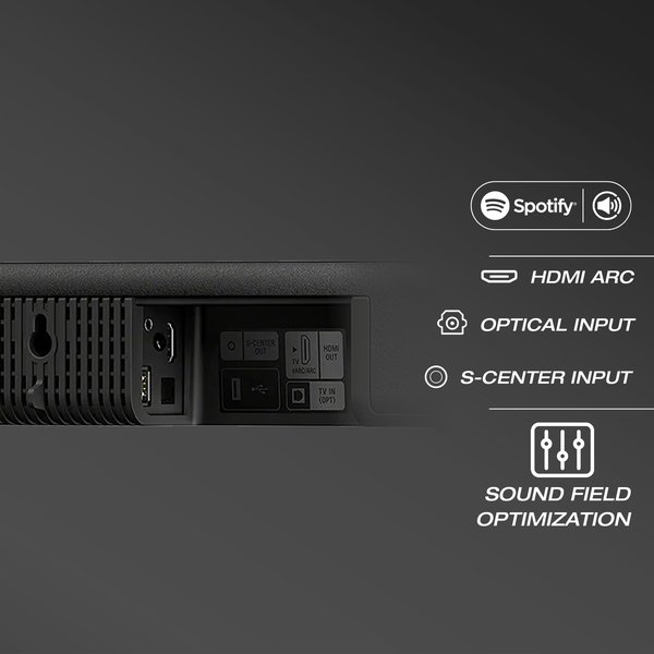 Easily calibrate the HT-A3000 to your room with Sound Field Optimization, ensuring optimal audio performance. Enjoy immersive surround sound from the built-in dual subwoofers and three front speakers, including a center channel for clear dialogue.