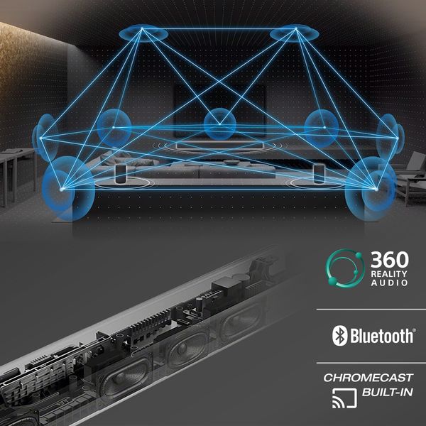 Immerse yourself in the full effect of Dolby Atmos and DTS:X through Sony's Vertical Surround Engine, S-Force PRO Front Surround, and 360 Spatial Sound Mapping. The 360 Spatial Sound adapts to your environment, and you can further enhance it with optional rear speakers for a truly immersive experience.