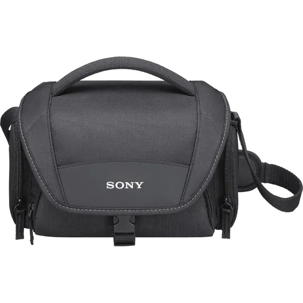 Access to the case is via its front snap coupler or zipper. The case is carried by its shoulder strap or top carry handle. The LCS-U21 Soft Carrying Case is backed by a limited one-year warranty from Sony.