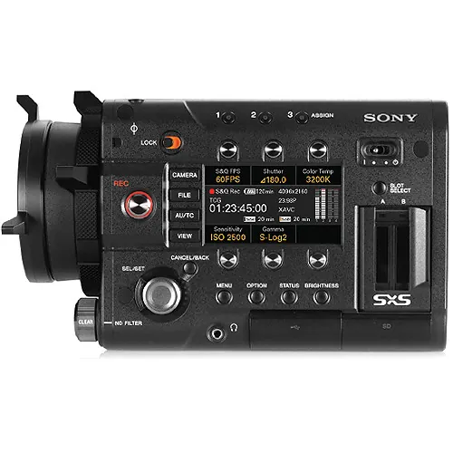 The Sony PMW-F5 CineAlta Digital Cinema Camera features an 8.9 MP Super35 image sensor capable of capturing 2K and HD internally in Sony's XAVC codec onto SxS PRO+ memory cards, and 4K and 2K raw to an optional Sony AXS-R5 external recorder. It features 14 stops of dynamic range, applicable to both raw and XAVC recording as long as S-Log is turned on, for truly filmlike rendering of highlights and shadows. The camera natively features an FZ mount and includes a PL-mount adapter.