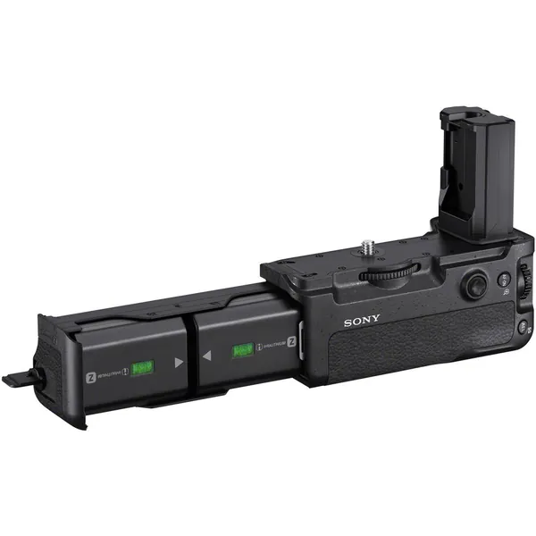 Dedicated to the Sony Alpha a9, a7 III, and a7R III mirrorless cameras, this VG-C3EM Vertical Grip offers both extended shooting time and a more comfortable grip when shooting in the vertical orientation. The grip accepts two NP-FZ100 batteries to effectively double the battery life for longer shooting sessions. The batteries can be charged in the grip while attached to the camera via the body's USB port. The grip's design maintains the same layout as the camera body itself, and includes a secondary shutter button and a multi selector for intuitive use. The grip is built from magnesium alloy and is dust and moisture resistant to match the weather sealing of the camera itself.