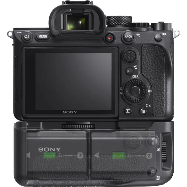 Dedicated to select Sony mirrorless cameras, the VG-C4EM Vertical Grip offers both extended battery and a more comfortable grip when shooting in the vertical orientation. The grip accepts either one or two NP-FZ100 batteries to increase the effective battery life for longer shooting sessions, and the batteries can be charged in the grip while attached to the camera via the body's USB port. The grip's design maintains the same layout as the camera body itself, and includes a secondary shutter button and Multi-Selector for intuitive use. The grip is built from magnesium alloy and is dust and moisture resistant to match the weather-sealing of the camera itself.