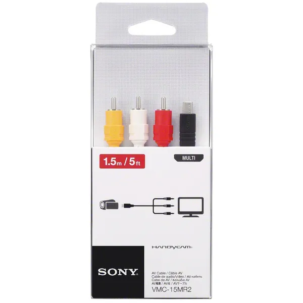 The Sony VMC-15MR2 Handycam A/V Cable connects your Sony Handycam camcorder directly to your TV or HDTV, so you can view your footage on the big screen. The 5' cable is compatible with all Handycam camcorders that are equipped with a Multi Terminal input.