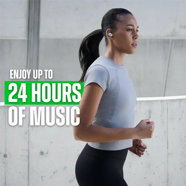 Up to 24 hours of audio, 8 hours from the buds + 16 hours from the case, with wireless charging