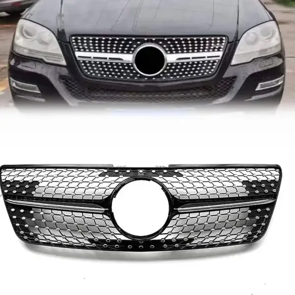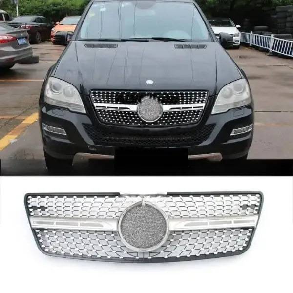 Compatible With Mercedes Ml W164 2009-2012 Sports Gt Amg Front Bumper Panamericana Grill W164 Grill Diamond Silver Lci CC-1799