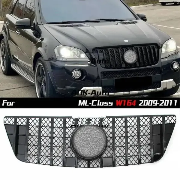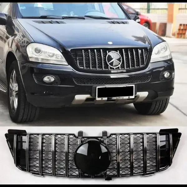 Compatible With Mercedes Ml W164 2009-2012 Sports Gt Amg Front Bumper Panamericana Grill W164 Grill Gtr Black Lci CC-1800