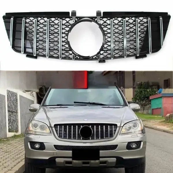 Compatible With Mercedes Ml W164 2005-2008 Sports Gt Amg Front Bumper Panamericana Grill W164 Grill Gtr Silver CC-1797