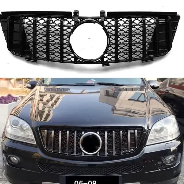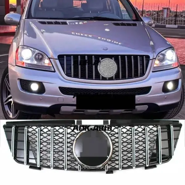 Sports Gt Amg Front Bumper Panamericana Grill W164 Grill Gtr Silver CC-1797 Compatible With Mercedes Ml W164 2005-2008