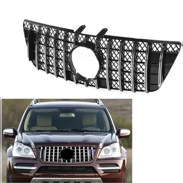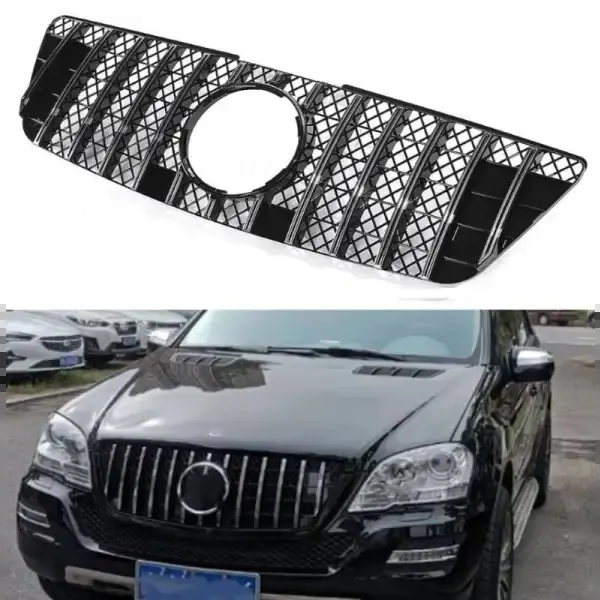Compatible With Mercedes Ml W164 2009-2012 Sports Gt Amg Front Bumper Panamericana Grill W164 Grill Gtr Silver Lci CC-1801