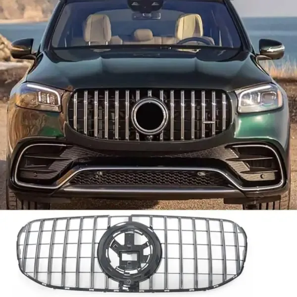 Compatible With Mercedes Gls W167 X167 2019-2023 Sports Gt For Amg Bumper Panamericana Grill W167 Grill Gtr Silver Gls CC-1793