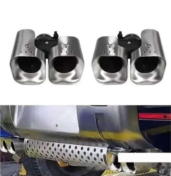 Stainless Steel Square Muffler Tip Tailpipe Nozzle Silensor 2.0 Square Khan Style Chrome Silver CC-7051 Compatible With Range Land Rover Defender 90 110 130 L663 Lr129997 2020+