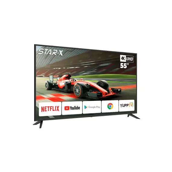 Star X 55" LED 4K UHD Smart TV 55UH640V Star-X works to make life easier and better for everyone by delivering a range of high quality household appliances from receivers, LED Television, and kitchen appliances. Provide our customers with high-performance, efficient, and valuable priced appliances with a goal in mind to gain their satisfaction and trust. Star-X offers you products with features that matter the most for you; quality, flexibility, and modernity. The appliances we offer are designed purposefully with consumers in mind. Our wide range of products will make you enjoy every moment at home, for our passion is to help people improve their life with innovation, reliability and speed. Seek to provide homeowners with a wonderful experience when choosing any of our products. When people buy from us, they don't just get an appliance, they become a member of our family. Their goal is to become a leading brand that fulfills the needs of customers and illuminates their experience. Features: 4K UHD display with LED panel offers a resolution of 3840 x 2160 pixels Integrated dual-channel 16W speakers deliver pristine audio output 8GB DDR2 RAM ensures maximum speed and multi-tasking efficiency as you switch between various applications Compatible with Netflix, Prime Video, Yupp TV, and various such web-based video streaming applications Features 1 HDMI port to connect gaming consoles, and media drives and 1 USB port for compatibility with various input devices The Screen Maintains its Integrity from any viewing angle,This allows you to enjoy dynamic,vibrant colour from every seat in room & This TV Brings you the excitement of movies and games,4K UHD means the TV screen has a minimum resolution of 3840 pixels wide and 2160 pixels high This Impex LED smart TV features multi-language support that translates your favorite TV shows in the language that you understand This Impex UHD LED smart TV provides a wide viewing angle to enhance your visual experience Exceptional gaming performance with quick response action, colour and detail of hdr brings everything you watch is clear,bright and incredibly realistic It also features a Wi-Fi connection that enables you to watch a trending web series directly online directly Ultra hd 4k android smart led tv 3840*2160 with built in receiver dtv dvb c/t/t2 ddr 1.5g emmc flash 8g 1 hdmi ports to connect set top box blu ray players gaming console 1 usb ports to connect hard drives and other usb devices 1 vga slot to connect your laptop/pc 1 headphone jack 2 av input slot 1 rf slot Specifications: Audio Jack: 3.5 mm Colour Name: Black Country of Origin: China Feature 3: Android Ideal Viewing Distance: 3.2 m Internal Memory: 8 GB Model Name: 55UH640V Model Number: 55UH640V Number of Cores: Octa Core Number of HDMI Ports: 3 Number of USB Ports: 2 Operating System: Android Processor Version: 4K UHD Product Height: 71.6 cm Product Length: 123.9 cm Product Weight: 11.5 kg Product Width/Depth: 8.1 cm RAM Size: 1.5 GB RAM Type: DDR2 Refresh Rates: 60Hz Screen Size: 55 inch Streaming Services: Netflix,Amazon Prime Video,You Tube,Disney+,Apple Tv+,Starzplay Arabia,Osn Streaming,Mbc Shahid ,Eros Now,Viu,Sonyliv,HBO Max TV Display Type: LED Usage Type: Home Video Format: 4K What's In The Box: TV, Remote Controller, User Maunal, Stand