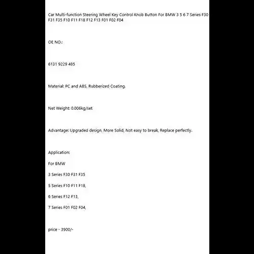 Title: Steering Wheel Button Knob Compatible With Bmw 5 Series F10 F07 2010-2017 F20 3 Series F30 F34 2012-2018 F12 7 Series F02 X3 F25 2010-2014 Steering Wheel Button Knob Black Left 61319229485