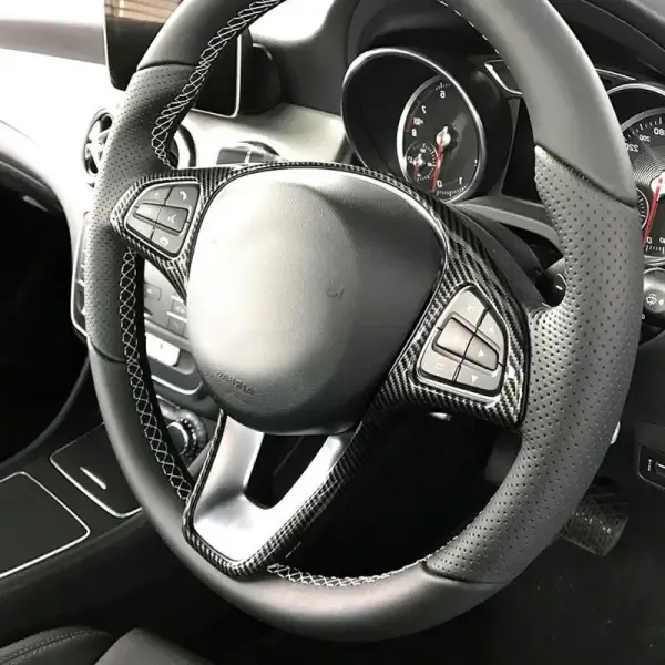 Steering Wheel Cover Decoration Trim Black CC-4223 Compatible With Mercedes A B C E Gla Glc Cla Gle Gls Class W176 W246 W205 W213 W253 W156 W117 W166