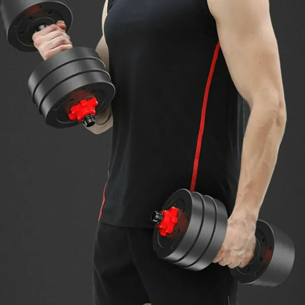 The dumbbells are suitable for a variety of strengthening exercises, such as lateral raises, bench press or two-arm rows. Use the extension bar to turn the dumbbell into a barbell and train your strength with squats, deadlifts and bench press. With your very own barbell and dumbbell 2in1 set you kan take your workout with you anywhere you want and are independent of the opening hours and distance to the next gym or fitness studio.