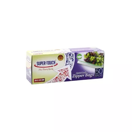 Easy lock. Easy Open. Resealable Bags with color seal. Clicks shut! Seals Tight!. Superior for protection. So easy to seal, So many uses. Features: Keep your food fresh. Resealable Bags with color seal. Easy lock. Easy Open Keeps in flavor, Moistures and Juices Resalable Zipper To Open And Close Contains 30 Bags Specifications: Brand: Super Touch Type: Zipper Bags Size: 26x20cm Contains: 50 Bags Packing: 24pcs