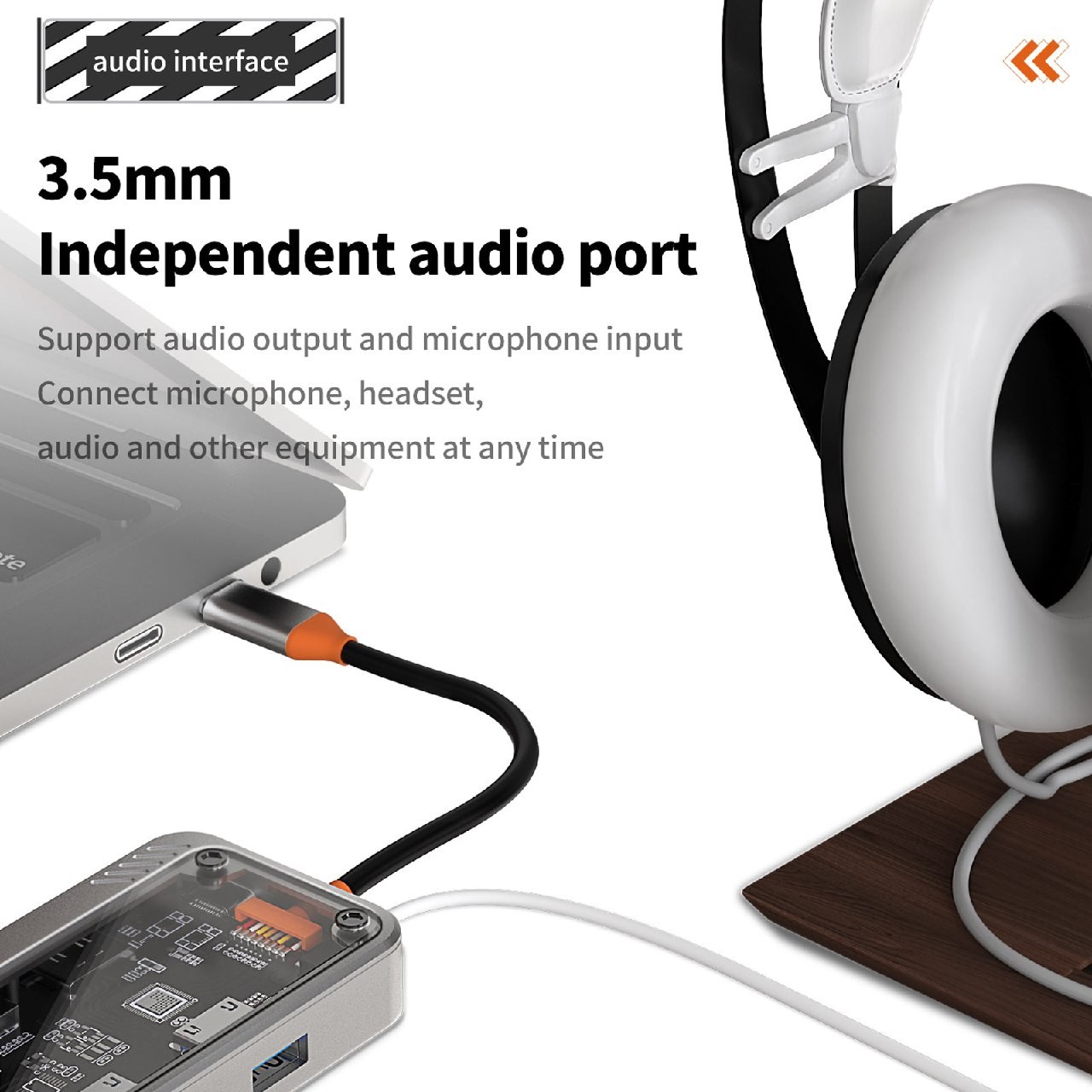 Independent Audio Port: Connect audio devices easily with support for microphone input and audio output.