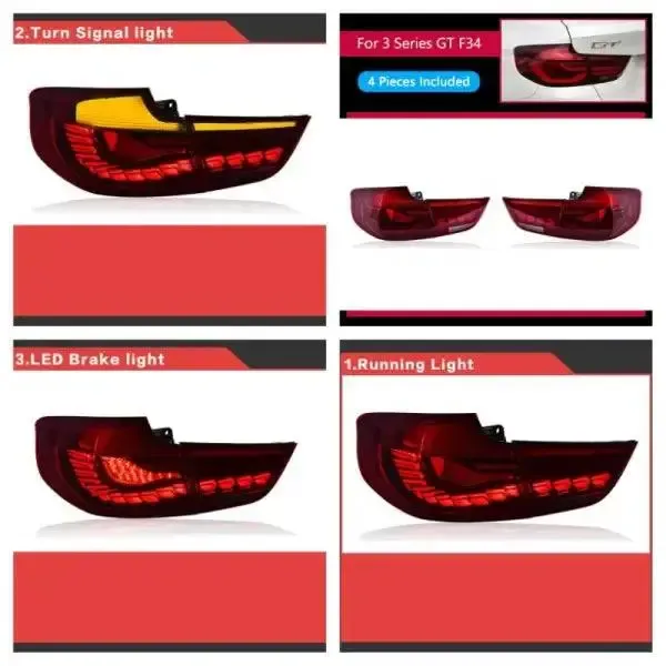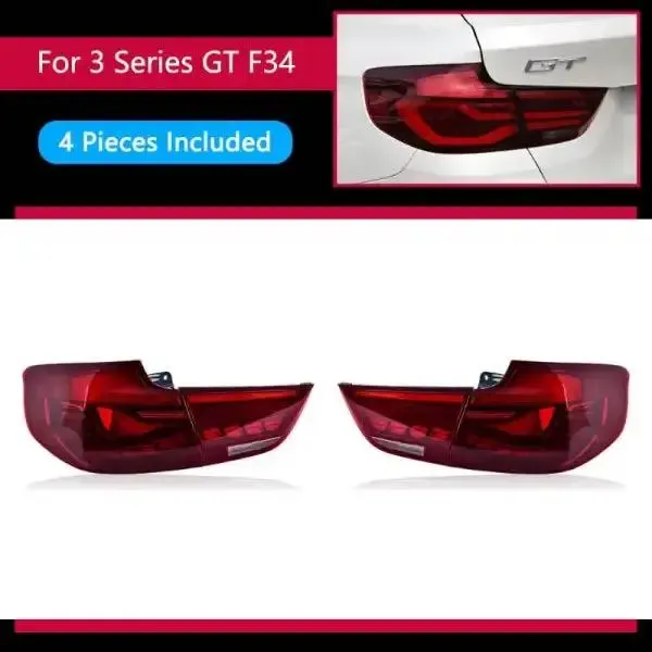 COMPATIBLE WITH BMW 3 SERIES GT F34 2012-2019 TAIL LAMP LIGHT TAILLIGHT TAILLAMP GTR DRAGON STYLE RED