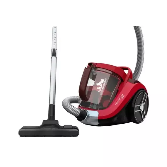 The Tefal Compact Power XXL Canister Vacuum Cleaner offers an impressive capacity in a compact format, for everyday cleaning performance and a more convenient cleaning experience. The XXL 2.5 L capacity is ideal for a wide variety of living spaces—ensuring greater autonomy and an effortless dust-container emptying process—with a deep-cleaning EffiTech Motor and advanced Cyclonic technology for long-lasting performance day after day. Features : Perfect XXL capacity A convenient 2.5 L capacity offers the perfect format for full surface coverage of your entire home environment—no matter the size Compact design Impressive cleaning performance is always within reach, with a compact design for maximum convenience and a format that can be easily stored in most cupboards and small closets. Extreme cleaning performance The cutting-edge technology of the EffiTech Motor system ensures greater dust pick-up with less energy use, for deep-cleaning power you can count on day after day. Easy-emptying dust container The vacuuming experience has never been easier, with a simple three-step system to empty the dust container quickly and painlessly. Advanced cyclonic technology The power of Advanced Cyclonic technology produces a high level of air and dust separation, for strong cleaning performance with long-lasting results. Dual-surface suction head Packing powerful performance into a compact frame, the high-efficiency suction head ensures a spotless home environment you can take pride in every day, with great results both on parquet/hardwood and carpets. Long power cord The 6.2 power cord offers a comfortable degree of freedom-of-movement, with a coverage radius of up to 8.8 m. Technical Details Sound Level 75 dB(A) Air Flow (dm3/s) 24,2 Depression (kPa) 15,7 kPa Silence Performance Standard (>69dB) PERFORMANCE Power 550 W Your habits Deep and unlimited cleaning Level(s) of filtration : 3 Dust Container : 2.5 Filtration Foam + Cyclone + High efficiency filter Handle : Classic handle with Easy Brush Maneuverability 1 x 360° wheels + 2 x large rear wheels Electric cord length : 6.2 m In use radius : 8.8 m Park system : 1 Maximum dust level indicator : Yes Transport handle : Yes Tube : Telescopic metal tube Floor brushes : 2 positions (SPA II) Parquet nozzle : Yes 2 in 1 crevice tool : Yes Upholstery nozzle : Yes Colours : Regal red / rooibos Dimensions (D x W x H) : 409 x 276 x 291 (mm) Weight : 5.891 (KG)