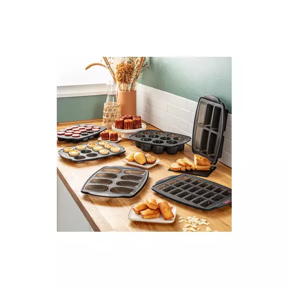 Tefal Crispy Bake Silicone Baking Tray 23x23 J4170314 The Tefal Crispybake silicone 21 mini-financier mold features a double-patented design made of high-resistance 100% platinum silicone to ensure perfectly even baking and irresistibly mouth-watering crispy results. Experience the best of silicone for all your favorite financiers, with ergonomic handles and a ridig ring for maximum comfort and peace-of-mind. Brand Tefal Model Number J4170314 Colour Schwarz Product Dimensions 28.4 x 25 x 7 cm; 340 Grams Diameter 1.25 Picometre Capacity 5.3 Cubic Centimetres Material Silicone Alloy steel. Special Features Electric Stovetop compatible. Item Weight 340 g