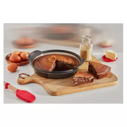 CRISPYBAKE SILICONE ROUND CAKE 24CM The best silicone for perfectly even crispier cooking! The patented Tefal® Crispybake range with its honeycomb base in 100 % Platinum high resistance silicone guarantees perfectly even cooking and a crispy finish that is impossible to resist! Try the best silicone to prepare your favourite cakes. Thanks to its ergonomic handles and rigid band, enjoy maximum comfort and safety